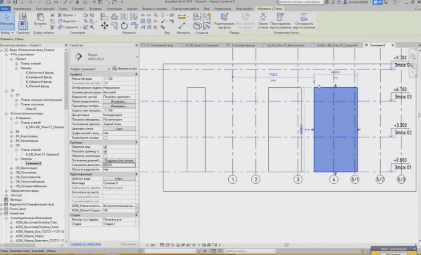 – For example, let's draw a wall here, another wall there, and one more this way. You can see that only this wall should appear in the cutaway view. To go to the cutaway view, I can use the “Project Browser” to find this cutaway. In our HV, the “Cutaways” — “Section 0” tab has appeared. Or a much easier way: highlight the cutaway by right-clicking “Go to View”.