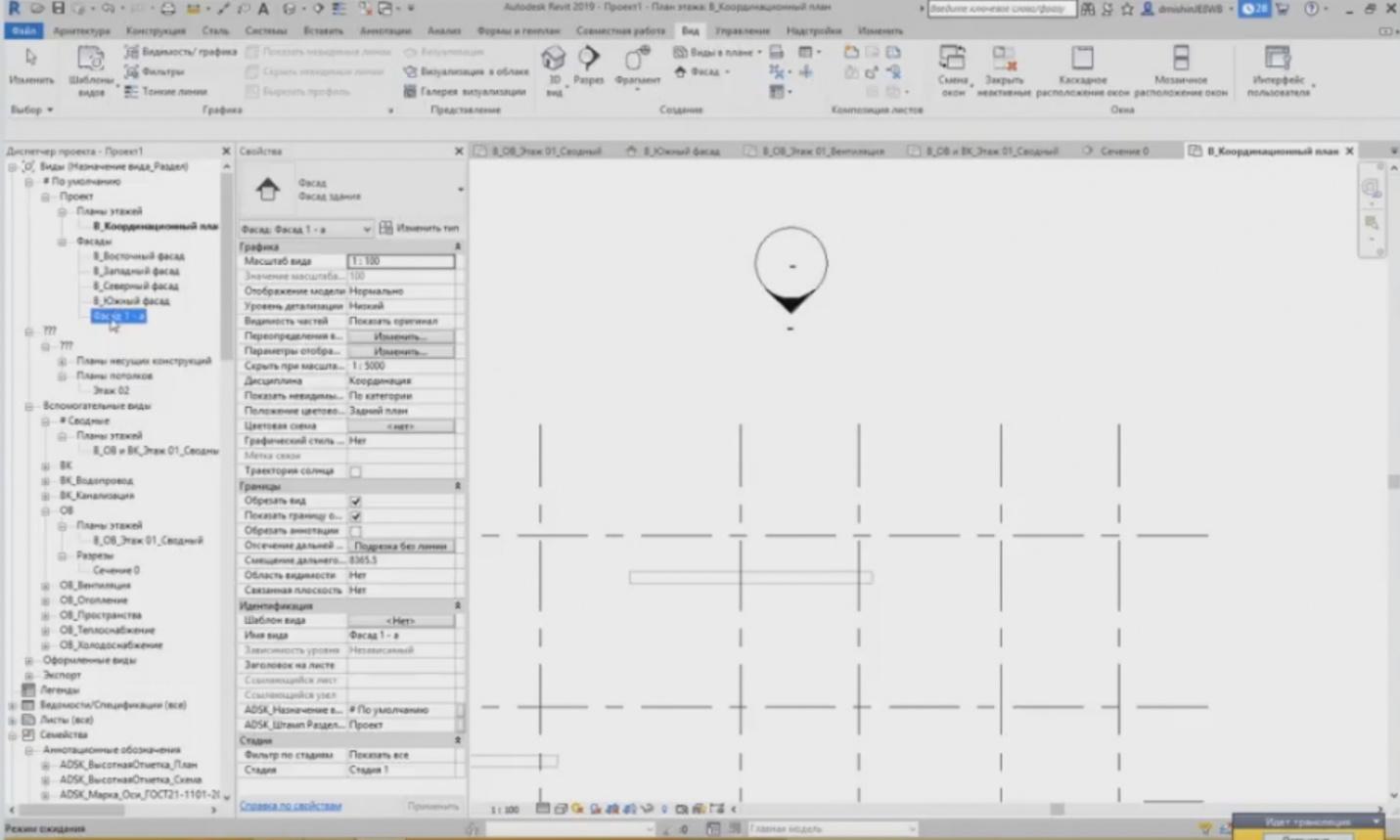 – Unfortunately, here (I will go to the coordination plan), the facades are created a little bit differently. We do not set the start and end points, we only determine from what side we will look at the element. It is tied to the elements.
