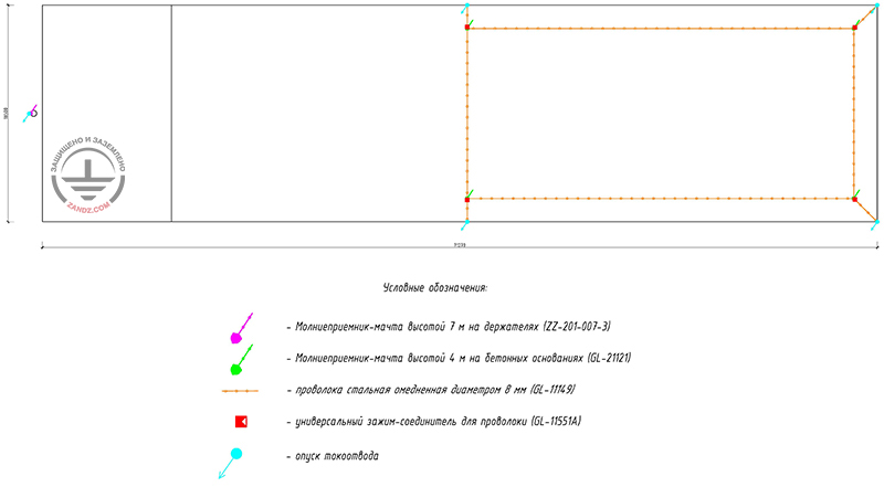 Рисунок 2 - Расположение оборудования для молниезащиты механической мастерской.