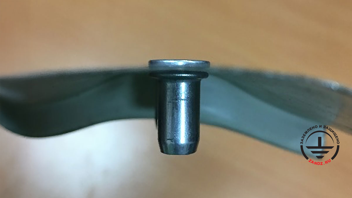 Установить молниезащиту на кровле – почти всегда означает нарушить ее целостность. Как это сделать так, чтобы герметичность кровли была восстановлена? Для металлочерепицы, профлиста и сэндвич-панели есть замечательное решение – глухая заклепка с внутренней резьбой. При установке, ее стенки сминаются таким образом, что обеспечивают плотное прилегание сверху и снизу металлического листа кровли. Место установки глухой заклепки становится полностью водонепроницаемым, а внутренняя резьба дает возможность закрепить винтом держатель молниезащиты. Надежность и стабильность герметизирующих свойств такого крепления обеспечивается благодаря отсутствию стареющих на солнечном свету или страдающих от колебаний температуры полимерных материалов.