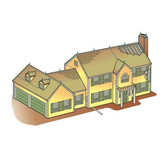Не рекомендуется размещать токоотводы в водосточных трубах и близко к окнам и дверям.