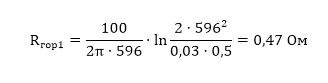 Расчетное сопротивление заземляющего устройства составляет 0,47 Ом.