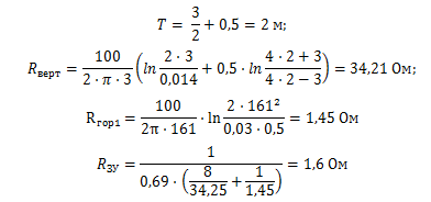 Расчетное сопротивление заземляющего устройства составляет 1,6 Ом, что меньше требуемого сопротивления 10 Ом.