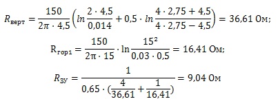 Расчетное сопротивление заземляющего устройства составляет 9,04 Ом, что меньше требуемого 10 Ом.