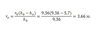 Для зоны защиты требуемой надежности радиус горизонтального сечения rx на высоте hx = 5,7 м определяется: