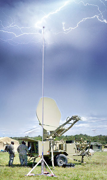 Легкие и надежные алюминиевые мачты молниезащиты разработаны с учетом стандартов Национальной противопожарной ассоциации США (NFPA). Поставляются мачты с портативными или фиксированными основаниями, а также в виде полностью мобильных комплектов. Комплекты включают портативные основы, все аппаратные средства, чехол и компоненты заземления. Мачты состоят из элементов собственного производства, которые обеспечивают структурную целостность и отличную электропроводимость всей конструкции. Кроме того, они складываются в отрезки длиной 20 сантиметров, что позволяет легко транспортировать их в отделённые места на любом транспортном средстве! Система уже используется армией США для защиты мобильных установок, в том числе спутниковых антенн.